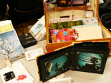 トンパ文字のMACHA&ETSUKOさんが久々のボックス出展。トンパ文字がデザインされたエコバッグ(700円〜)、カレンダー(1,000円)などなど。自分たち流にアレンジしたトンパ文字は意外にポップ。ちょっとしたところに飾れるアートフレーム(800円〜)もあります。/写真・下段は北海道からご出展の「と遊庵」さん。!東京進出です。古布と手漉きの紙を使用した小物は手作りのあたたかさが伝わってくる作品。写真・右の古布ポーチ(6,000円)はカメラバッグにも使えそう。着物を着て撮影会なんていかがでしょう。