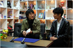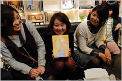 写真家のhowdygotoさんと一緒に遊びに来てくださったイラストレーターのRIEさん(左)。力強くてかわいい素敵なイラストでした。で、たまたま居合わせたボックス・オーナーのMIKAKOさん(右)と意気投合。その場で『世田谷Webテレビ』の番組が決定(7月の第3週目)。楽しみ。しかしhowdygotoさんと秋元さんも知り合いだったとは。つながりすぎだって(笑)。 |