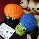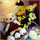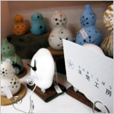 ビーズ&あみぐるみ作品を出展の『m.k.works』さんのボックスに新作入りました。耳ながウサギさんにいも虫さんなどのあみぐるみが充実。写真・右は謎のきのこボーイズ(?)。いやガールズかもしれませんが。とにかくかわいい。 |