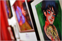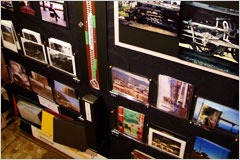 roomではイラストレーター・カネオヤサチコさんの『横丁がやってくる!展3』を開催中(写真・左)。相変わらず、昭和を感じさせる絵と世界観でいろんな人を魅了しておるです。ちょっと駄菓子屋ちっくな展示もナイス。回るベッドの新作は新境地だと思います。傑作。会期は22日(月・祝)までです。/wallでは鉄道好き女子4人組による『鉄子的幸せ視点2』を開催中(写真・右)。もともと写真でつながった4人だけに、それぞれ個性的な”鉄”写真を展示されています。ポストカードは無料でどうぞ(よろしければ募金箱にお願いしますっ)。28日(日)まで開催中。ぜひ〜。 |