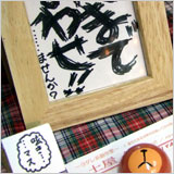 新作です。みのたさんのボックスのコルク額絵に写真版登場(写真・左)。これもいいっ。さらに額装された原画作品も出現(写真・右)。毎回いろんなことが呟かれるそうです。まさにリアルtwitter作品。さて、今回は何と書いてある? |