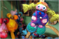 新規ご契約です。ネパールからやってきた商品いろいろです。フェルトや布を素材とした、ニット帽、ポーチ、バッグなどたくさんあります。サイズが大きくて使いやすいバッグがハンガーラックにも掛かっていますのでお見逃し無くっ。ボックスの商品の奥には、ネパールで撮影されたスナップ写真のファイルが展示されています(写真・右)。こちらも探してみてください(笑)。 |