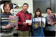 昨日7日(日)の22時から放送された『ジャーナる!』(フジテレビ)という番組で、wallにて開催中のグループ写真展『鉄子的幸せ視点2』が紹介されました(写真左は取材風景)。40秒程度でしたが、メンバーのみなさんの撮影風景やインタビューも登場。お疲れ様でしたー。楽しい展示ですのでぜひっ。今月の29日まで開催中です。/で、明後日10日(水)は『ちい散歩』(テレビ朝日・9:55〜)という番組に233が登場します。ちいさんには、いろいろボックス・オーナーさんの作品をお買い上げいただきました。ありがとうございました。写真右は取材いただいた際にスタッフのみなさんと一緒に撮ったスナップ。さて、どんな感じになっていますやら。 |