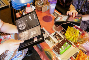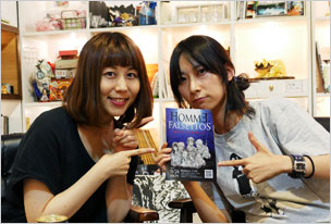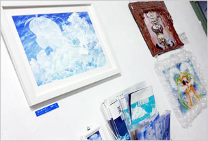 ボックス作品ご紹介です。写真・左はアジアンアクセサリーを出店されている「ぱにばがいんちゃ」さん。かわいい鳥や羽モチーフ以外にも、ミニポンポンストラップやポストカードも販売中。写真・右は新規ご出展、台湾出身の写真家・董建民さんのボックス。ポートフォリオ展示と写真集「ION WATER」を販売されています。ロモでも撮影されている建民さん、超かっこいい写真集です。