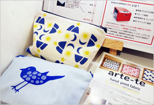 ボックス作品ご紹介です。写真・左は製版サービスでもお世話になっている「arte-te」さんのボックス。シルクスクリーン印刷によるポーチを販売されています。デザインがかわいい。写真・右はイラストレーター「