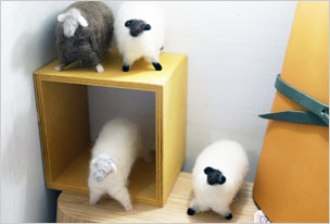 ボックス作品ご紹介。羊毛と革作品を出展されているユニット「