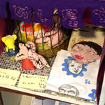 写真・左は立体イラストレーター宇都宮潔さんの作品。作業場のミニチュアで、素材として使われている本物のネジの本数を当てるクイズになっています。ぜひチャレンジしてみてください。/写真・中は伊豆からやってきた海の流木。部屋に置くだけでも雰囲気が出ますが、アイデア次第で使い方は無限。考えるだけで楽しいっス。お値段もリーズナブル。/右はMomoyoさんのイラスト作品。かわいらしくてちょっとグラマラスな女の子がいい感じです。ポストカード・ラックに出展中。 |