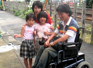 『世田谷233』のバリアフリーについて、佐瀬さん(写真奥)と川口さん(写真手前)のご協力を得て検証しました。とりあえず、ギャラリーの常連でもある近所の子供たちとスナップ。