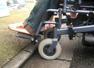 川口さんの車いすは電動式です。一般的なサイズと比較すると多少横幅はスリムだそうです。