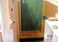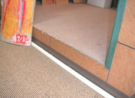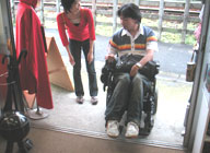 ギャラリーの入口には高さ4cm程の扉のサッシの凹凸があります。これも先ほどと同じく、電動式の車いすなら簡単ですが、手動式では少し力が要りそうです。こちらは常時何かを施すわけにはいきそうに無いので、力の弱い方にはスタッフがお手伝いすることにしました。