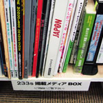 コミュニティ・メディアやマス・メディアにおいて、233やボックス・オーナーさんが取り上げられた媒体を集めて展示。客観的な視点から233が浮かび上がってきます。資料コーナーとしても機能。