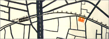 若林の地図をモチーフに型染めという手法で染めたオリジナル手ぬぐいです。本物の地図を使用していますので、実際の地形通りです。生地は綿100%です。クールでしょ。