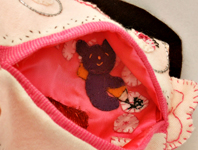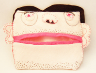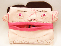 まえだふきえさんのげろティッシュ・ミニ版。ポケットティッシュを入れて使えます(左上の写真にマウスを乗せてください)。口の中には虫歯を書いているくまちゃんが...。
